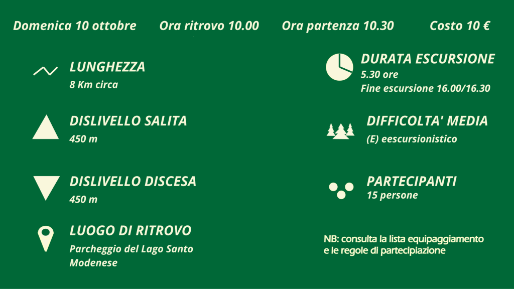 L’itinerario ci porterà alla scoperta degli antichi ghiacciai, delle tracce lasciate dal loro passaggio, e della natura geologica che ha originato gli specchi d’acqua Santo, Baccio e Turchino circondati dal bosco che cambia colore.