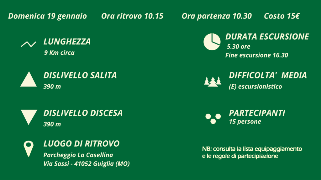 Alla guida è permesso di escludere i partecipanti all’escursione se al momento della registrazione, o prima della partenza, non siano muniti dell’equipaggiamento obbligatorio o in condizioni psico-fisiche adeguate, o se durante l’escursione non dovessero rispettare le regole alla partecipazione. In caso di maltempo o di cambio zona covid l’escursione sarà rimandata.