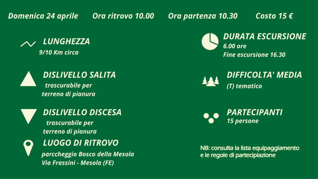 NB: l’ingresso al Bosco della Mesola richiede un costo di ingresso di 1€ non compreso nel costo dell’escursione.