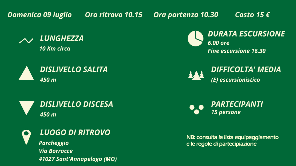Alla guida è permesso di escludere i partecipanti all’escursione se al momento della registrazione, o prima della partenza, non siano muniti dell’equipaggiamento obbligatorio o in condizioni psico-fisiche adeguate, o se durante l’escursione non dovessero rispettare le regole alla partecipazione. In caso di maltempo o di cambio zona covid l’escursione sarà rimandata.