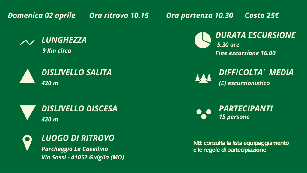 Immersi nella natura primaverile e nel paesaggio particolare dei Sassi di Roccamalatina, tra boschi di querce e castagni, sarà anche un’occasione per ampliare il legame condiviso tra uomo e cane in un’ambiente diverso dal quotidiano; proprio per migliorare la comunicazione e relazione con il vostro amico peloso.
