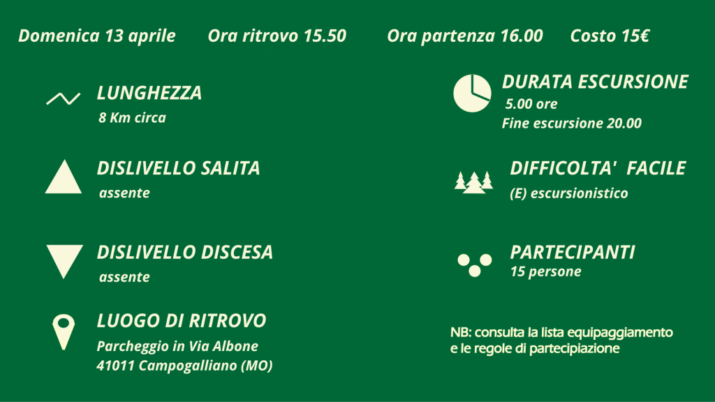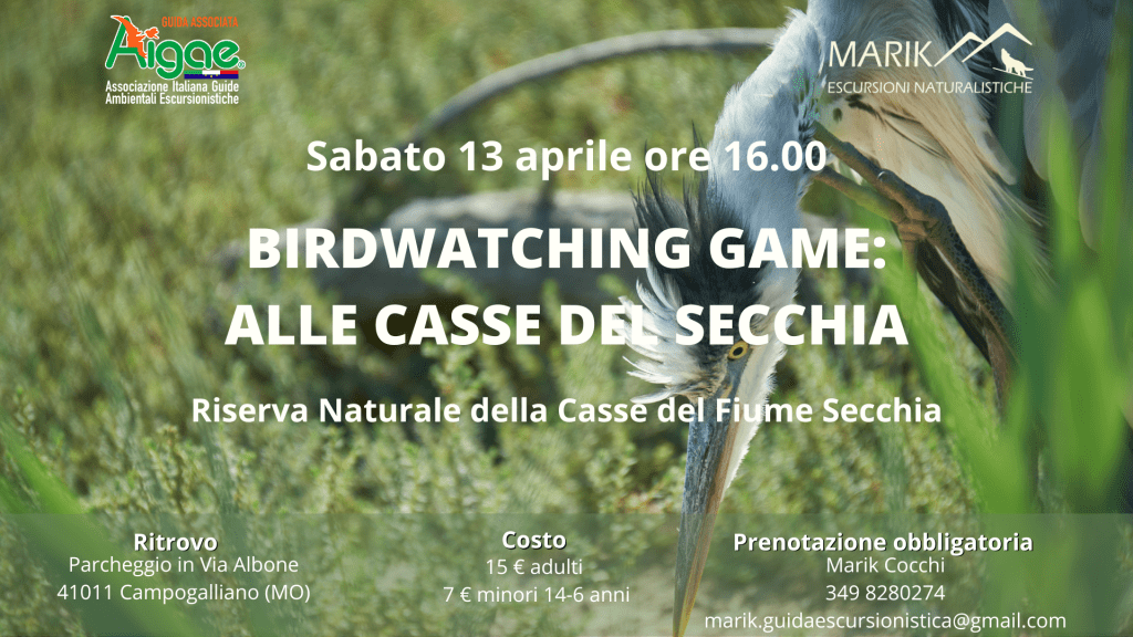 Invece che tra i paesaggi boscosi delle montagne e colline, questa volta andremo in pianura, alla ricerca della ricca avifauna acquatica e silvestre. Percorreremo i sentieri, tra gli specchi d’acqua e i boschi di pioppi, della Riserva Naturale Orientata delle Casse d’Espansione del Fiume Secchia cercando di avvistare la numerosa avifauna stanziale e migratoria del periodo.