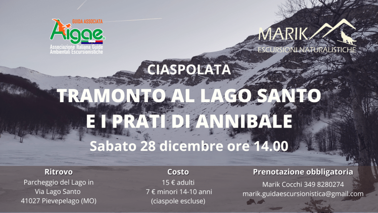 Sabato 28 dicembre ore 14.00 ritrovo al parcheggio del Lago Santo modenese – 41027 Pievepelago (MO).